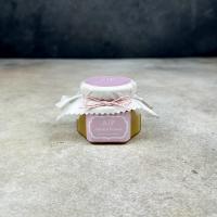 Упаковано в стеклянную банку с металлической крышкой и шапочкой из ткани.