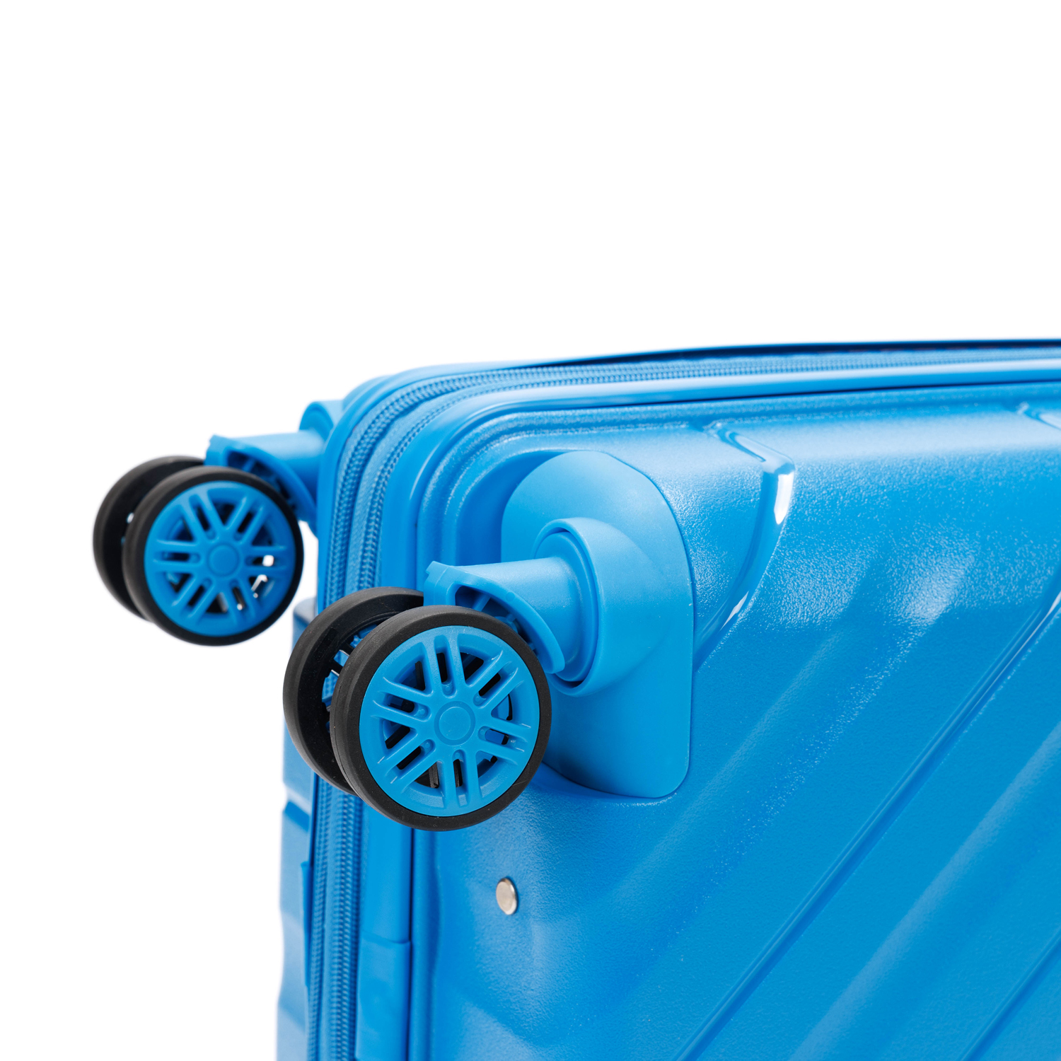 Каждый чемодан из серии "В ОТПУСК" оборудован удобной ручкой и удивительно легкими двойными колесами, что обеспечивает максимальную маневренность и комфорт во время путешествий.
