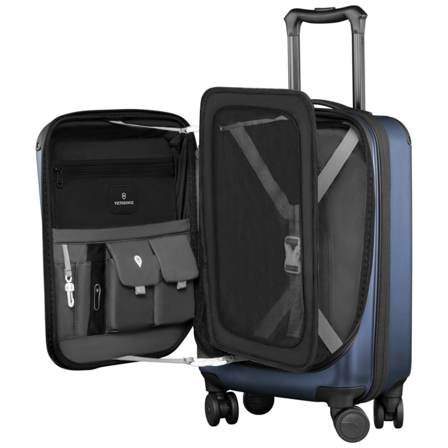 Удобная двойная алюминиевая телескопическая ручка фиксируется в трех разных позициях: 104 см, 99 см и 94 см для удобства путешественников с разным ростом. Ударопрочный 100% поликарбонат Bayer со стильной, устойчивой к царапинам матовой поверхностью обеспечивает повышенную жесткость, сохраняя высокий уровень функциональности. Защитные угловые кожухи и накладки застежек обеспечивают дополнительную защиту зонам, наиболее подверженным повреждениям или износу. Система увеличения объёма на 3 см позволяет путешественникам регулировать размеры чемодана для соблюдения правил и требований большинства авиаперевозчиков. Фронтальная дверца на молнии со стабилизирующими ремнями обеспечивает удобную загрузку вещей сверху. Съёмная сетчатая разделительная стенка на молнии растягивается для удобства упаковки. Поставляется со съёмной панелью для электронных устройств, вмещающей планшетный компьютер или ноутбук с диагональю экрана 15,6''. Может устанавливаться на место разделительной сетчатой стенки. Фронтальная организационная панель обеспечивает быстрый доступ к наиболее необходимым в путешествии вещам и включает специальный кармашек для устройства «CheckSmart Luggage Tracker» из коллекции «Lifestyle Accessories 4.0» (в комплект не входит). Фиксирующие ремни в форме Y охватывают большую поверхность и обеспечивают сохранность сложенных вещей.
