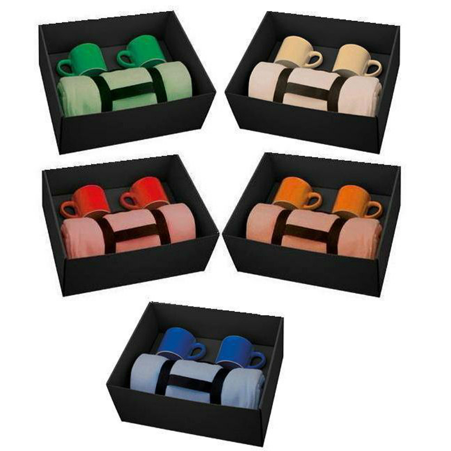 Набор: 2 керамические кружки, объем 300 мл и флисовый плед, в подарочной коробке.
