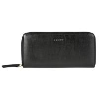 Кошелек закрывается на молнию, включает в себя: одно отделение на молнии, два отделения для купюр, два универсальных отделения, двенадцать отделений для кредитных карт.