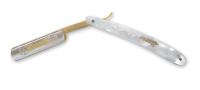 Бритва опасная DOVO 985810 производится вручную, что придает ей особую ценность и значимость. Ручка изготовлена из целлулоида с имитацией перламутра. На хвостике нанесено название бренда, на лезвии – гравировка, являющаяся доказательством подлинности изделия.