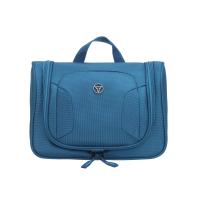 Несессер выполнен из высокопрочного полиэстера в синем цвете, обладает устойчивостью к различным загрязнителям и относительной влагонепроницаемостью. Основное отделение имеет широкий клапан на молнии с двумя бегунками. Несессер содержит 6 различных по назначению и объёму внутренних отделений на молнии и 4 эластичных держателя. С внешней стороны расположены эргономичная ручка для переноски и крючок для подвешивания несессера.