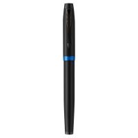 Подарочная перьевая ручка Parker из коллекции IM выполнена из нержавеющей стали и покрыта матовым лаком металлик чёрного цвета. Декоративные элементы и перо из нержавеющей стали с отделкой PVD черного цвета. Дополнена акцентными кольцами насыщенного голубого цвета. Изделие отлично подойдёт под персонализацию и в качестве подарка как для коллеги, так и для руководителя. Диаметр пишущего узла составляет 1,0 мм. Ручка упакована в оригинальную картонную подарочную коробку Parker. Поставляется в комплекте с картриджем синего цвета.