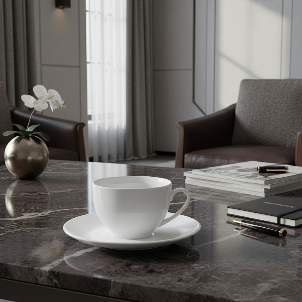 Размер блюдца: длина 15,8cм, высота 1,9 cм.