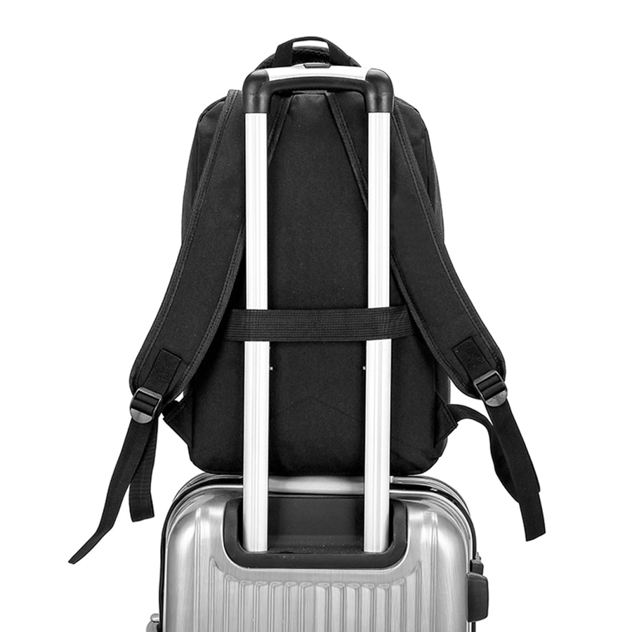 Специальная накладка для чемодана на задней стенке делает этот рюкзак незаменимым спутником для путешествий.