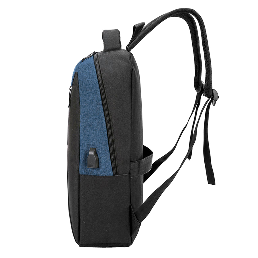 На передней стенке большой диагональный карман на молнии с открытым карманом внутри. Сбоку два открытых кармана и USB-разъем с проводом для подключения внешнего аккумулятора.