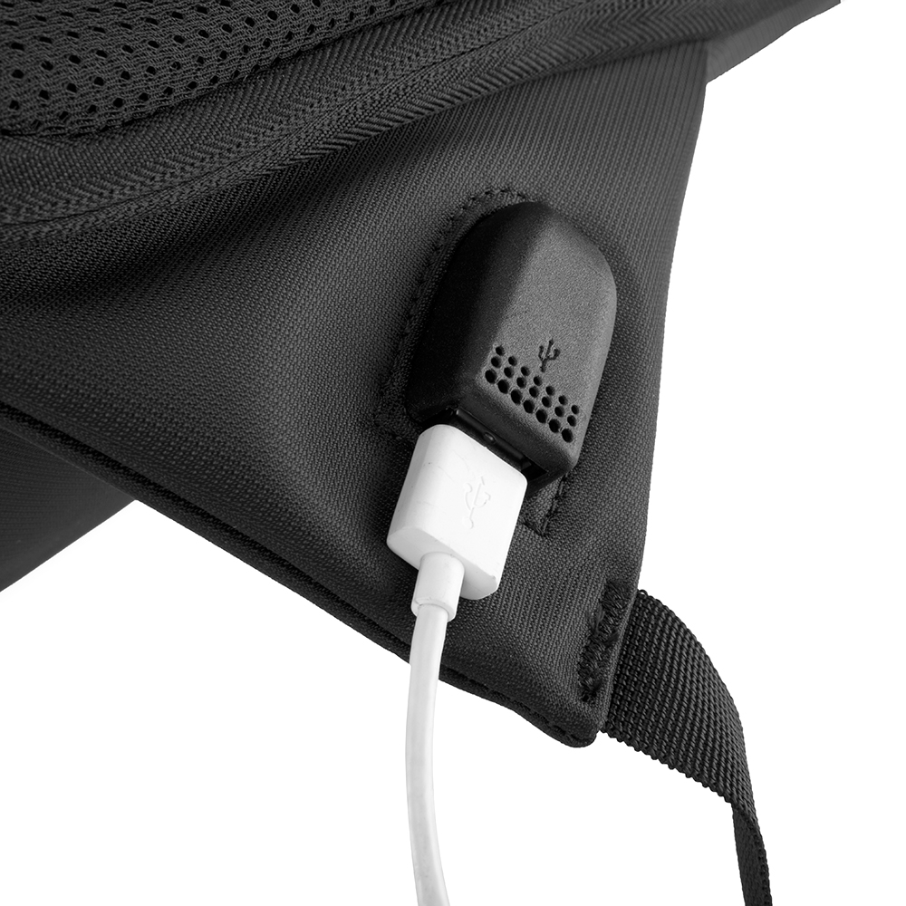 Удобно расположенный USB-разьем со шнуром для подключения внешнего аккумулятора позволяет оперативно заряжать гаджеты.