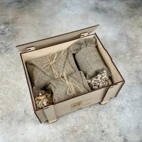 - деревянная подарочная коробка с наполнением и декором.