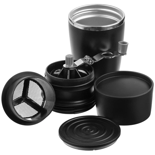 Подарочный набор «Кофе 3-в-1 Black Pro» создан для тех, кто хочет получать баристный уровень удовольствия от кофе в любом месте. Многофункциональный девайс объединяет в себе кофемолку, фильтр-воронку и термостакан, поэтому весь путь от зерна до готового напитка проходит прямо у получателя в руках — без лишних устройств и движений.