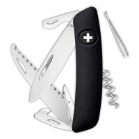 Лезвие с надежным фиксатором для предотвращения закрытия при работе (лезвие можно разблокировать, зажав логотип SWIZA на рукоятке)