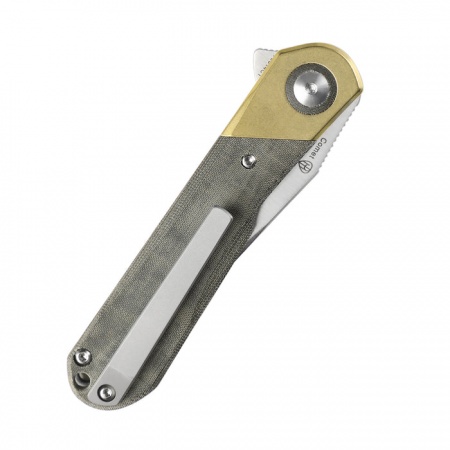 Kizer Comet серии Vanguard представляет собой складной нож, разработанный дизайнером Paul Munko. Сборка этой серийной модели превосходна. Cтальной клинок Crucible 154CM установлен на шарикоподшипник. Эта модель оснащена зеленой рукоятью Micarta с латунью, а зажим для переноски идеально подходит для повседневного ношения.