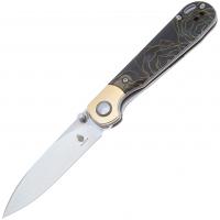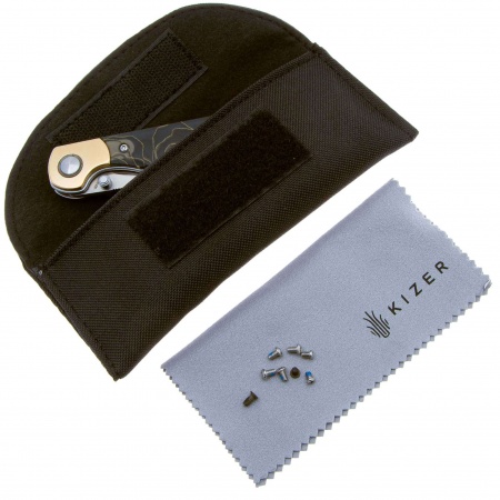 Kizer PPY - это приятный и контрастный нож, имеющий вытянутую тонкую форму. Его рукоять выполнена из раффира с красивым золотистым узором, выполненные из латуни. Клинок ножа извлекается с помощью шпенька, выполнен из прочной и надёжной стали, поэтому этот джентльмен может не только в простые повседневные задачи.