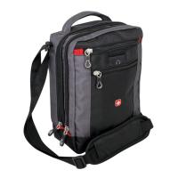 Сумка изготовлена из высокопрочного полиэстера в чёрно-сером дизайне. Размер изделия – 22х9х29 см, подходит для хранения и транспортировки основных рабочих аксессуаров и электронных гаджетов.