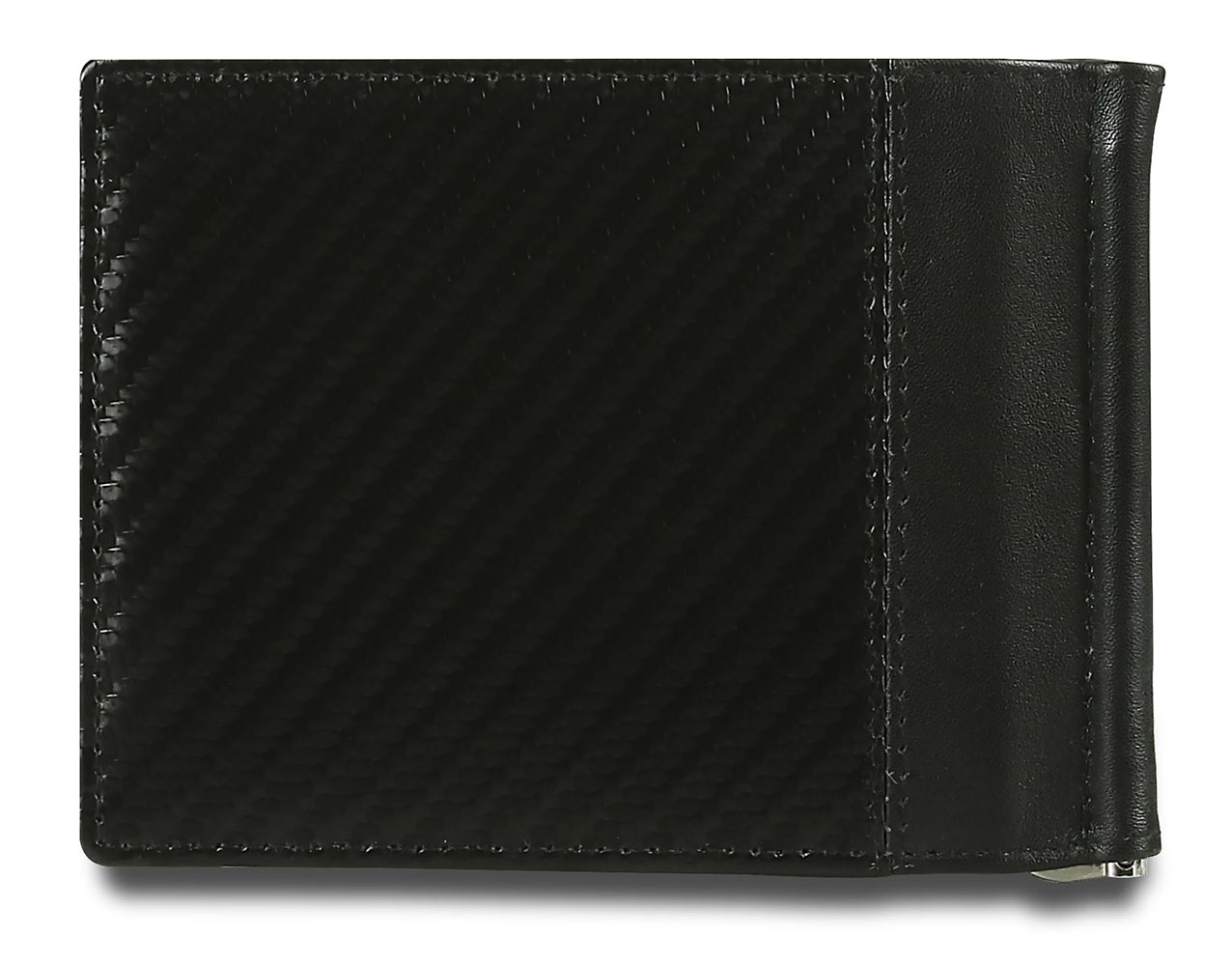 Функциональная организация: отделение для банкнот с металлическим держателем, 6 слотов для карт, 2 открытых кармана, защита от RFID-сканирования.