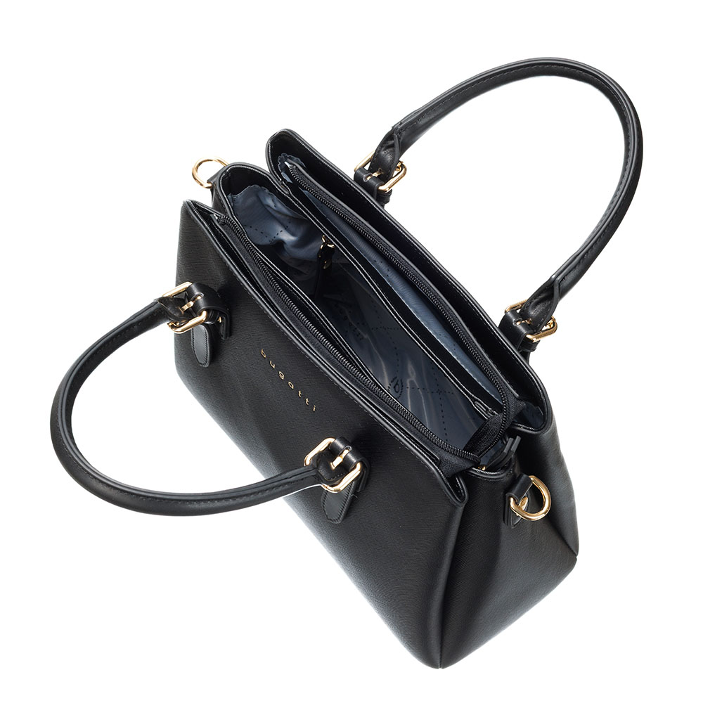 Внешняя организация: задний карман на молнии, ручки высотой 11 см, съёмный регулируемый плечевой ремень (до 130 см), ножки на дне