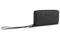 Функциональная организация: 2 отделения на молнии, 23 слотов для карт, 5 карманов, 2 отделения для купюр, сетчатый карман, отделение для монет на молнии, ремешок на запястье с карабином, защита данных RFID.