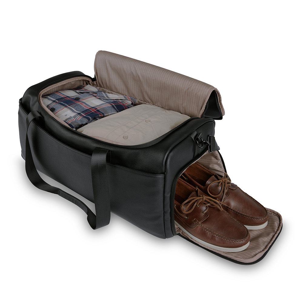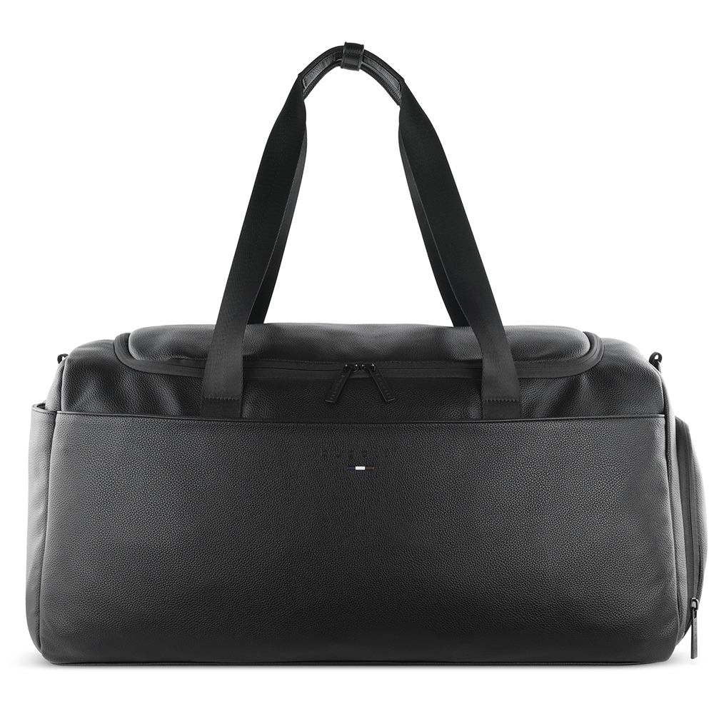 Внешняя организация: передний карман на молнии, задний карман на молнии, боковой открытый карман, боковое отделение на молнии для обуви, крепление к телескопической ручке чемодана, съемный регулируемый плечевой ремень, 2 ручки для переноски