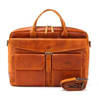 Высококачественная натуральная кожа цвета коньяк | Дополнительное отделение для ноутбука | Мужская большая деловая сумка