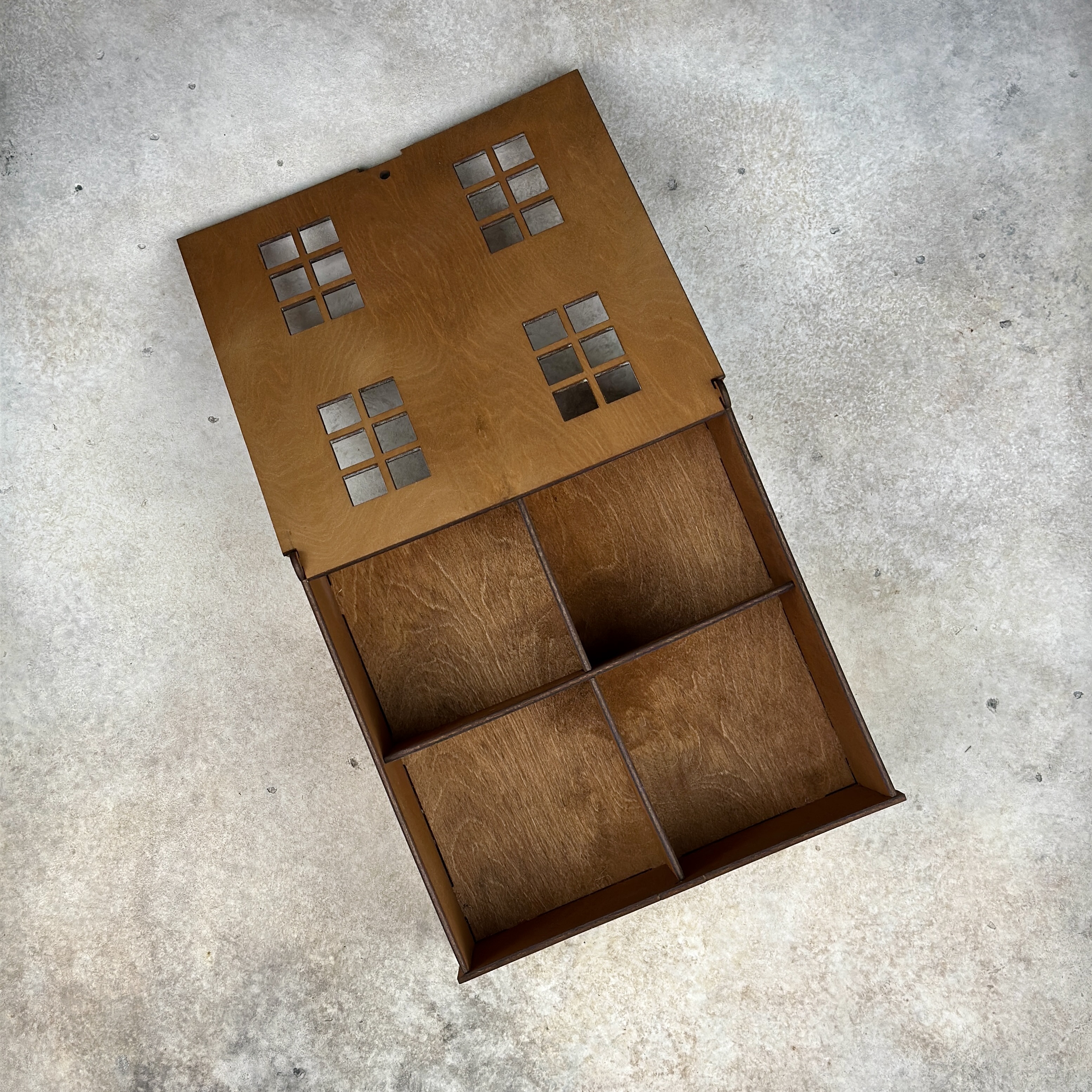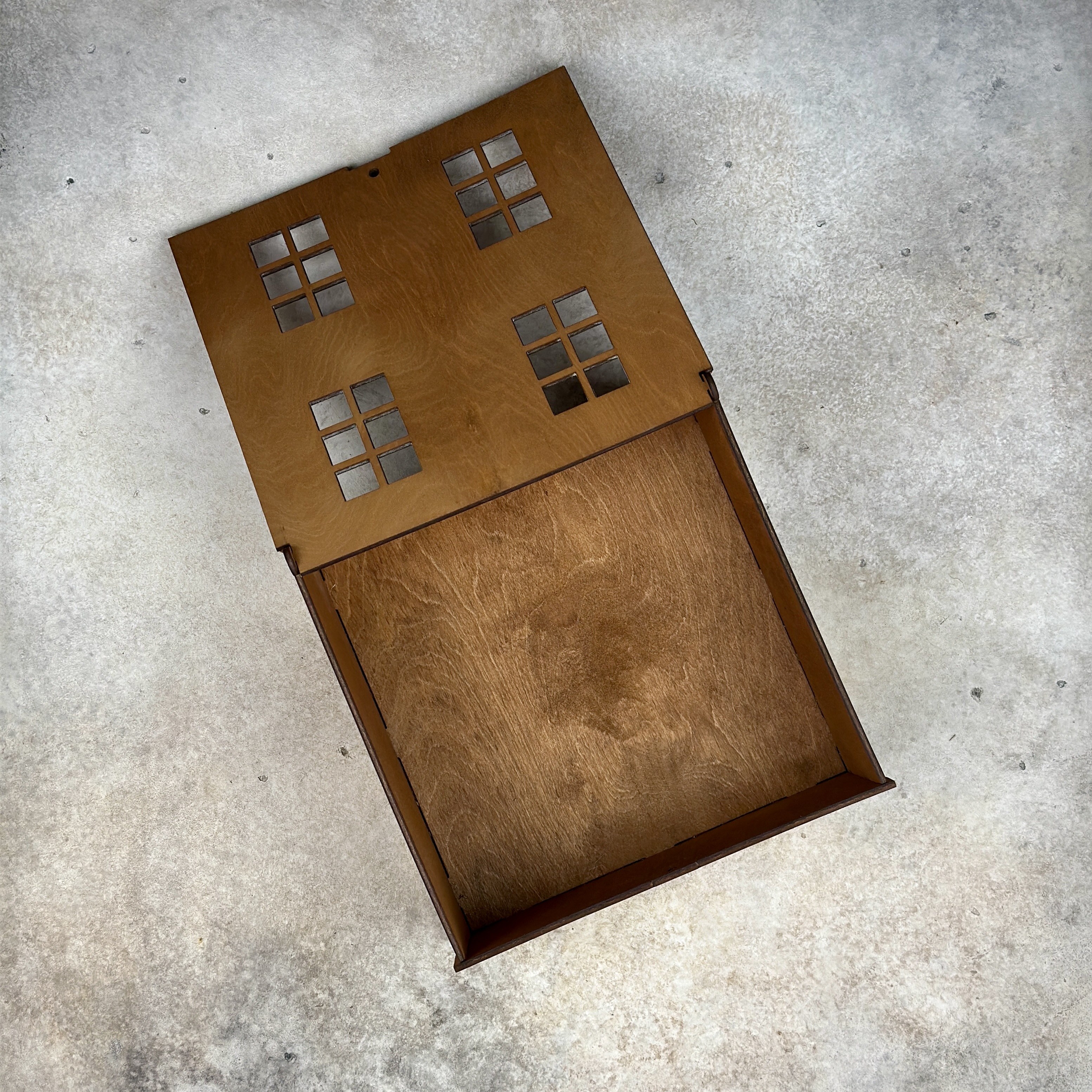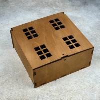 Коробка фиксируется ниткой бечевки, а также предлагаем вариант праздничной ленты с бантиком.