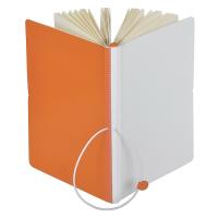 Один из самых ярких и оригинальных блокнотов для молодой деловой аудитории. С горизонтальной резинкой и зигзагообразной строчкой на корешке. Обложка скомбинирована из 2-х цветов - белая лицевая сторона и оранжевая обратная сторона обложки.