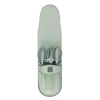 В набор входят: ножницы для ногтей, ножницы для кутикулы, пинцет наклонный узкий, пилка металлическая.