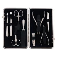 В набор входят: ножницы для ногтей, ножницы для кутикулы, кусачки для ногтей, кусачки для кутикулы, книпсер, пинцет наклонный, пилка металлическая, пушер, шабер «копьё».