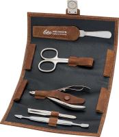 В набор входят: ножницы для ногтей, кусачки для кутикулы, маникюрный шабер двухсторонний, пинцет наклонный, пилка металлическая. Набор произведен в Германии, в городе Золинген.