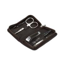 Элегантный чехол на молнии выполнен из натуральной итальянской воловьей кожи, инструменты изготовлены из углеродистой стали превосходного качества.