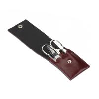 Элегантный чехол на кнопке выполнен из натуральной итальянской воловьей кожи, инструменты изготовлены из углеродистой стали превосходного качества.