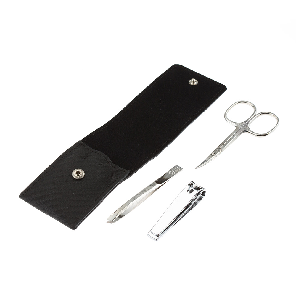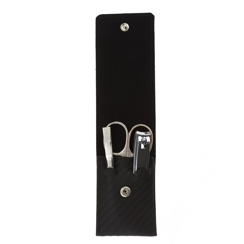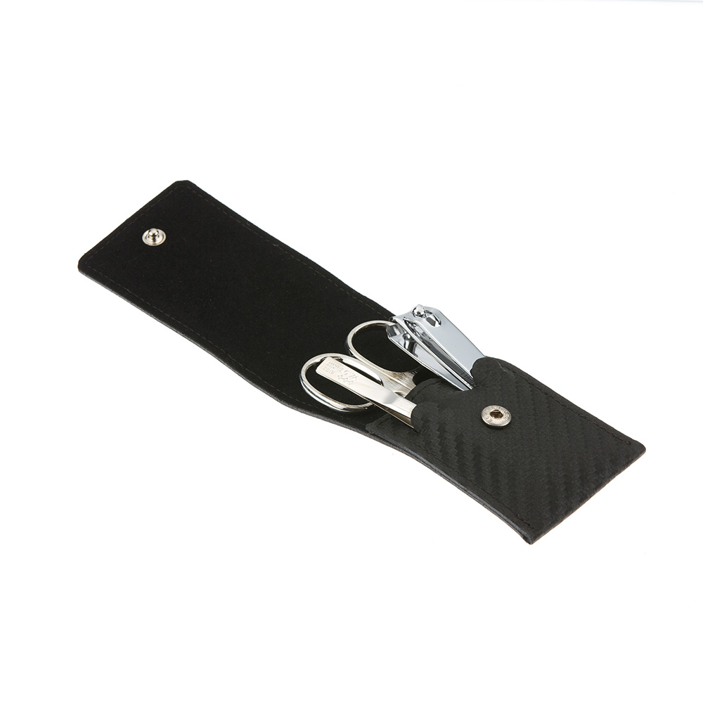 Элегантный чехол на кнопке выполнен из натуральной итальянской воловьей кожи, инструменты изготовлены из углеродистой стали превосходного качества.