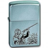 Серебрянная матовая зажигалка Zippo с изображением охотника.