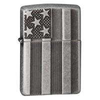 Прочный корпус этой зажигалки с поверхностью Antique Silver Plate™ украшает выполненный методом чеканной гравировки дизайн в стиле американского флага. Результатом этой уникальной комбинации являются красивый дизайн и интересная структура.