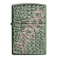 Лицевая сторона этой новой модели Armor® с покрытием Chameleon украшена светлым узором в стиле кожи крокодила, нанесённым методом глубокого резного оттиска. Логотип Zippo, выгравированный лазером на поверхности резного рисунка, эффектно смотрится на корпусе с переливчатым покрытием. На этой модели впервые продемонстрировано применение сразу двух методов персонализации корпуса.